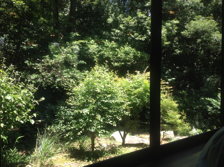 大きな窓からは雑木林と水流の穏やかな川が見えました