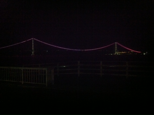 夜は。。ちょっと見にくいですが、明石大橋が