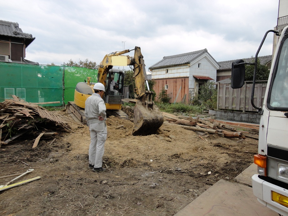 そして、指示された箇所を、地山の部分まで重機で掘削
